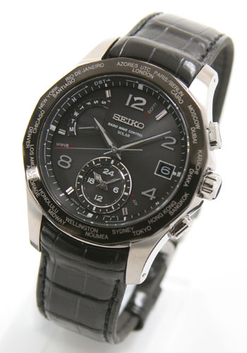 ● 【5年保証付】セイコー ブライツ ワールドタイムソーラー電波時計 チタン クロコレザー ブラック メンズ SAGA011