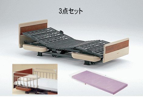 ●★組立・送料無料★介護用ベッド【らくしょう・楽匠】3モーター3点セットインテリアと実用を兼ねた木目タイプ【標準】【木目ダーク】レギュラー(191cm)