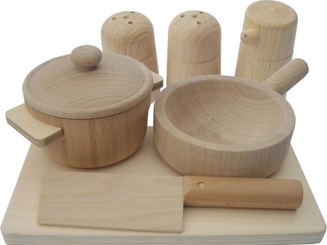 無塗装で安心!お子様の手になじむサイズ【お料理セット】ドイツ産ブナ手作り木製おままごと道具